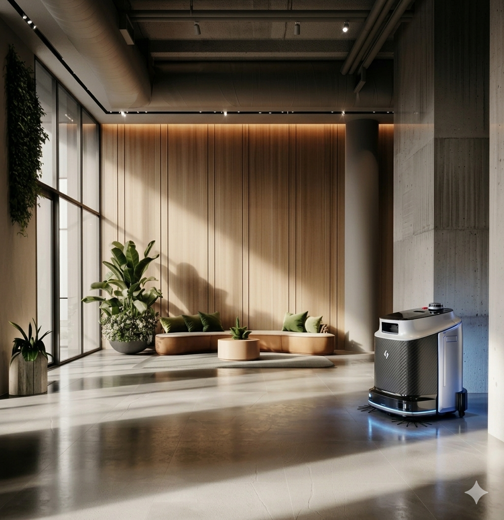 ניקיון 24/7 בעזרת הרובוט האוטונומי שלנו — משולב עם צוות מנקים וגננים.